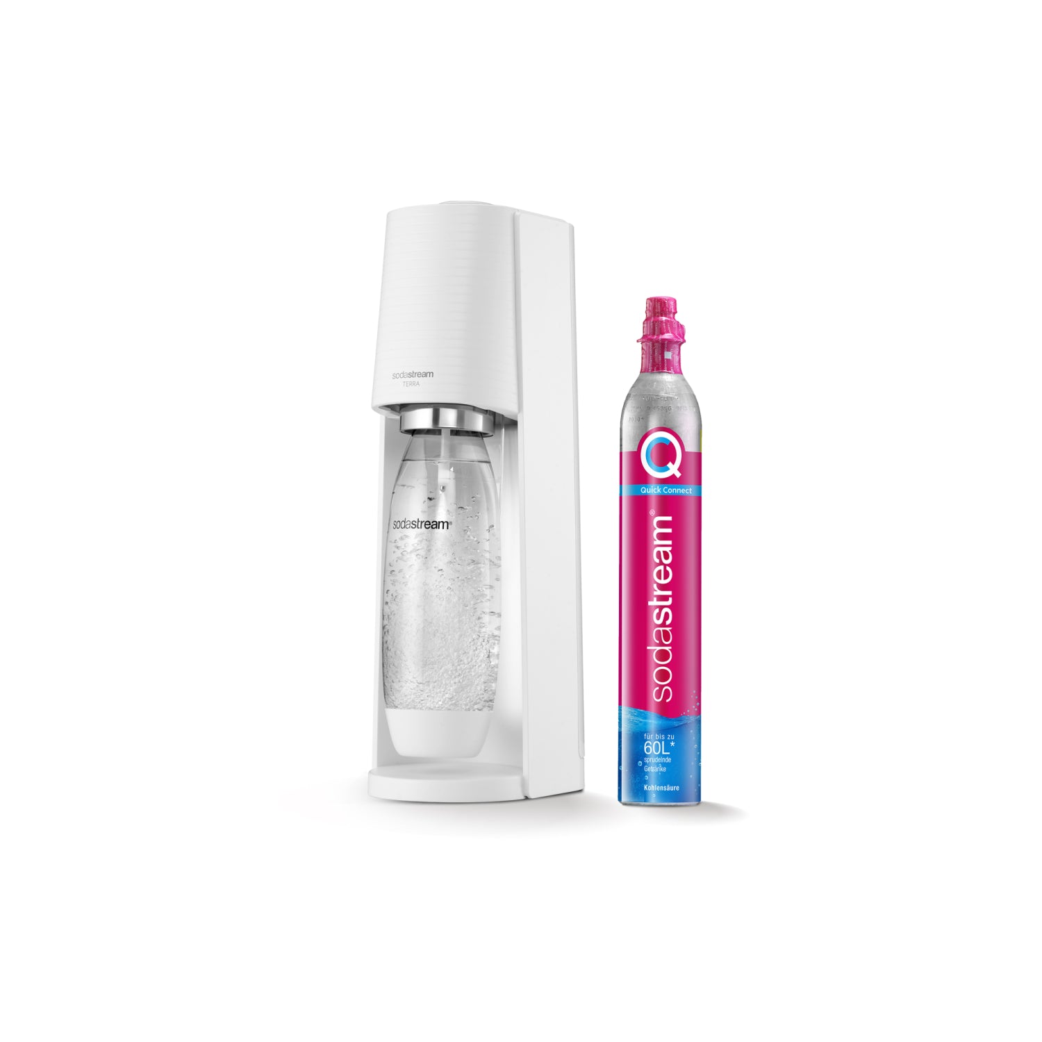 Das Einsteigergerät SodaStream Terra ist der Nachfolger vom Wassersprudler Spirit und überzeugt durch das einfache Flaschen- und Zylinderhandling, dem großen Sprudelknopf sowie dem matten Design. Mit der 1L wiederverwendbaren sowie spülmaschinenfesten Kunststoffflasche kommt noch mehr Sprudelspass nach Hause.